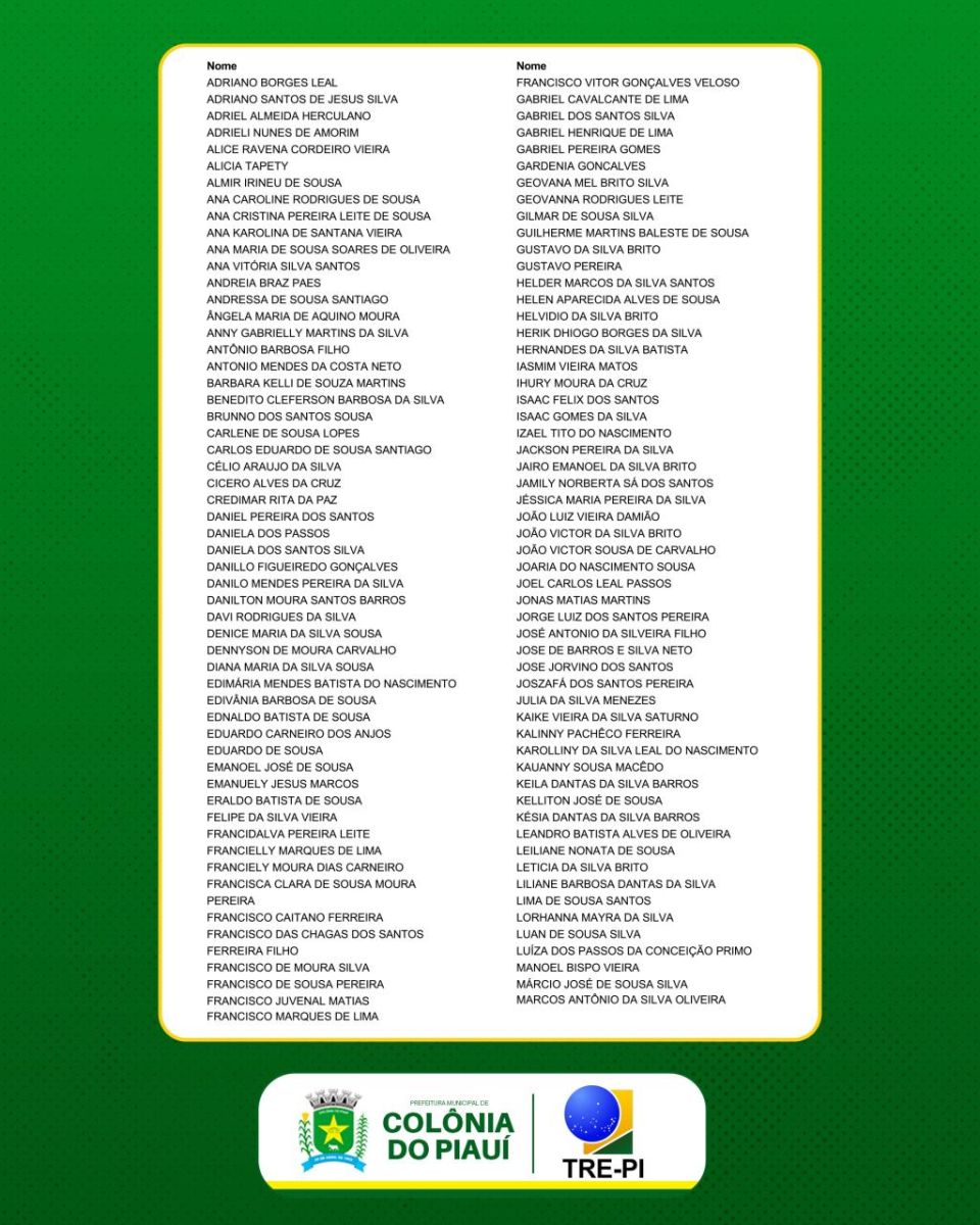A relação com os nomes dos eleitores atendidos estará disponível logo abaixo desta matéria para consulta pública.