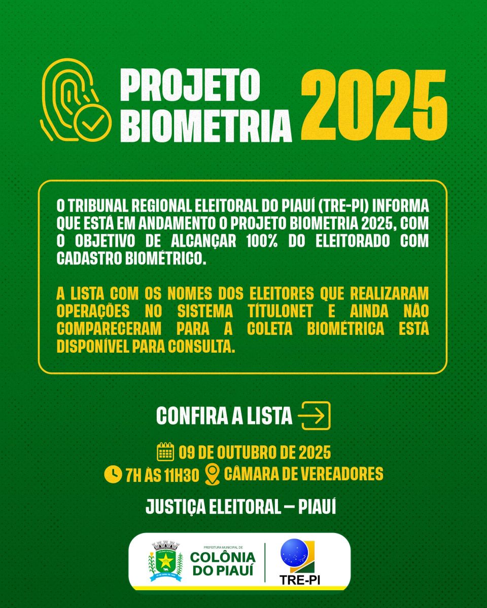 O Projeto Biometria 2025 já está em andamento em Colônia do Piauí!